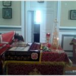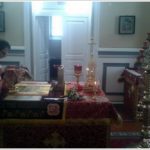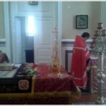 о. Игорь внес в собор два больших пучка иерусалимских свечей, зажженных от Благодатного огня, и от них были зажжены все лампады и свечи в алтаре.